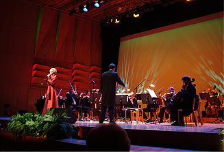 Musiikkikeskukseen hän oli pukeutunut punaiseen. Ilman tangokuningattaren titteliäkin hän hallitsi estradia ja tulkitsi vaikuttavasti, ilman suuria eleitä, edesmenneen mestarin säveljäämistöä.